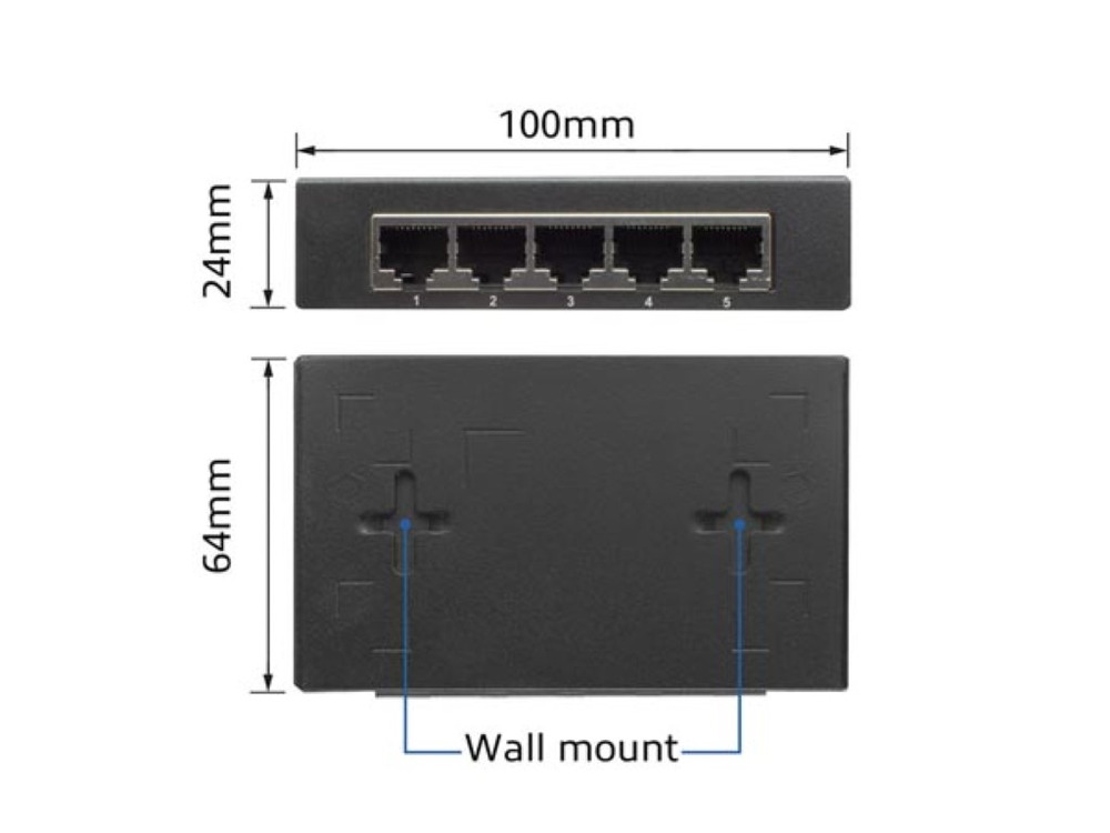 Uitgerust met gaten voor zowel wand- als bureaumontage, past de switch zich gemakkelijk aan elke werkomgeving aan.