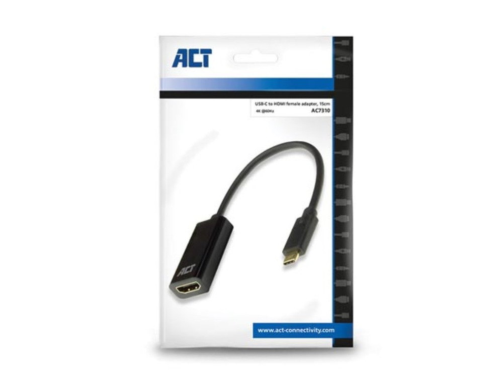 De ACT AC7310 USB-C naar HDMI Adapter biedt een naadloze verbinding tussen je laptop en elk apparaat met een HDMI-ingang. Met een resolutie tot 4096 x 2160 (4K) @ 60Hz levert deze adapter scherpe en heldere beeldkwaliteit, perfect voor het afspelen van video's, het weergeven van foto's en het presenteren van professionele presentaties.La AC7310 USB-C di ACT a HDMI ti permette di collegare senza problemi il tuo laptop a qualsiasi dispositivo con ingresso HDMI. Con una risoluzione fino a 4096 x 2160 (4K) @ 60Hz, questo adattatore offre una qualità dell'immagine nitida e chiara, perfetta per guardare video, mostrare foto e fare presentazioni professionali.
