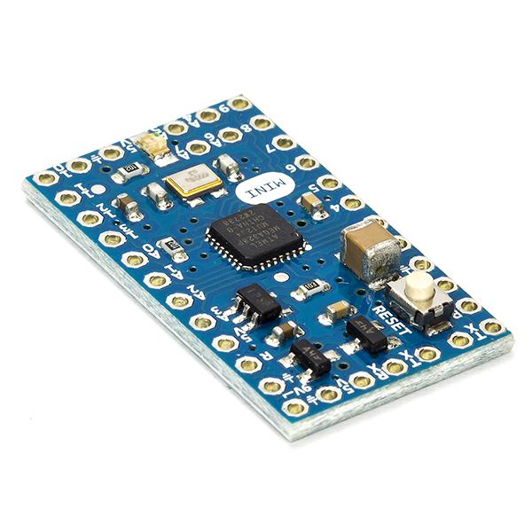Arduino Mini 05 è una piccola scheda a microcontrollore originariamente basata sull'ATmega168, ma ora fornita con il 328 (scheda tecnica), pensata per l'uso su breadboard e quando lo spazio è limitato. Dispone di 14 pin di ingresso/uscita digitali (di cui 6 utilizzabili come uscite PWM), 8 ingressi analogici e un oscillatore a cristallo da 16 MHz. Può essere programmata con l'adattatore seriale USB o altri adattatori seriali USB o RS232 a TTL.