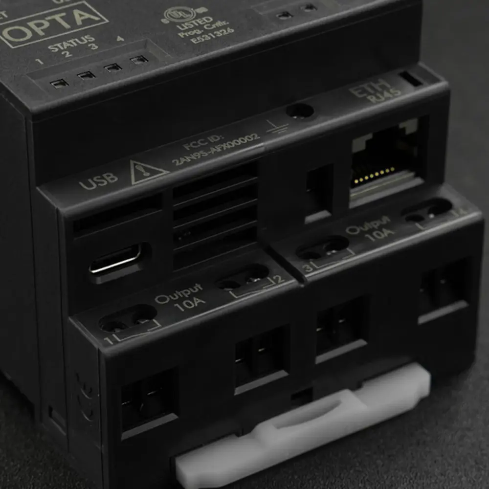 Arduino Opta si distingue per le sue funzionalità avanzate, specificamente progettate per una perfetta integrazione in ambienti industriali in continua evoluzione. Questo micro PLC è basato sul potente MCU dual-core Cortex®-M7 + M4 STM32H747XI, garantendo capacità di controllo e monitoraggio in tempo REAL . Grazie al suo design robusto, Opta consente agli utenti di immergersi facilmente nelle applicazioni di manutenzione predittiva.