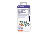 La gamma comprende 50 puntalini neri per cavi da 1,5 mm² / AWG16, 50 puntalini verdi per cavi da 6 mm² / AWG10, 50 puntalini grigi per cavi da 4 mm² / AWG12, 50 puntalini blu per cavi da 2,5 mm² / AWG14, 50 puntalini rossi per cavi da 1 mm² / AWG14. Cavi AWG18, 50 puntalini bianchi per cavi 0,75 mm² / AWG20, 50 puntalini gialli (L=14 mm) per cavi 0,5 mm² / AWG22 e 50 puntalini arancioni (L=12 mm) per cavi 0,5 mm² / AWG22.