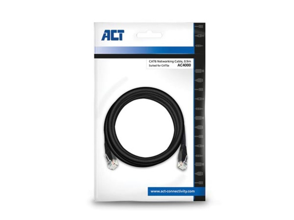 Il cavo di rete CAT6 U/UTP nero lungo 0,9 metri offre prestazioni affidabili sia per le reti domestiche che per gli ambienti aziendali. Perfetto per l'uso con reti da 10/100/1000 Mbps, garantisce una connessione Internet veloce e stabile.