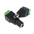 Questo set di adattatori per spina CC viene fornito con un connettore maschio e femmina da 5,5 mm x 2,1 mm. L'adattatore termina con una morsettiera alla quale è possibile collegare facilmente i cavi. Questo adattatore offre molta libertà nel collegare un sistema alla propria alimentazione. Gli ingressi della morsettiera sono etichettati + e -, in base al polo positivo della spina CC.