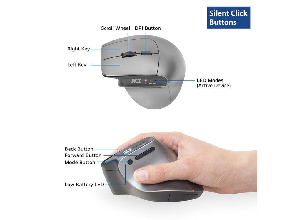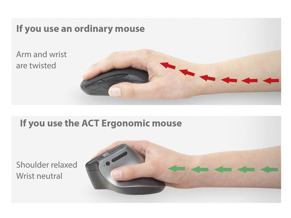 Il design ergonomico previene lesioni da sovraccarico mantenendo la tua mano comoda e in una posizione naturale. Grazie alla modalità a basso consumo energetico e a un interruttore on/off, la batteria dura più a lungo, anche quando il mouse è inattivo o riposto in viaggio.