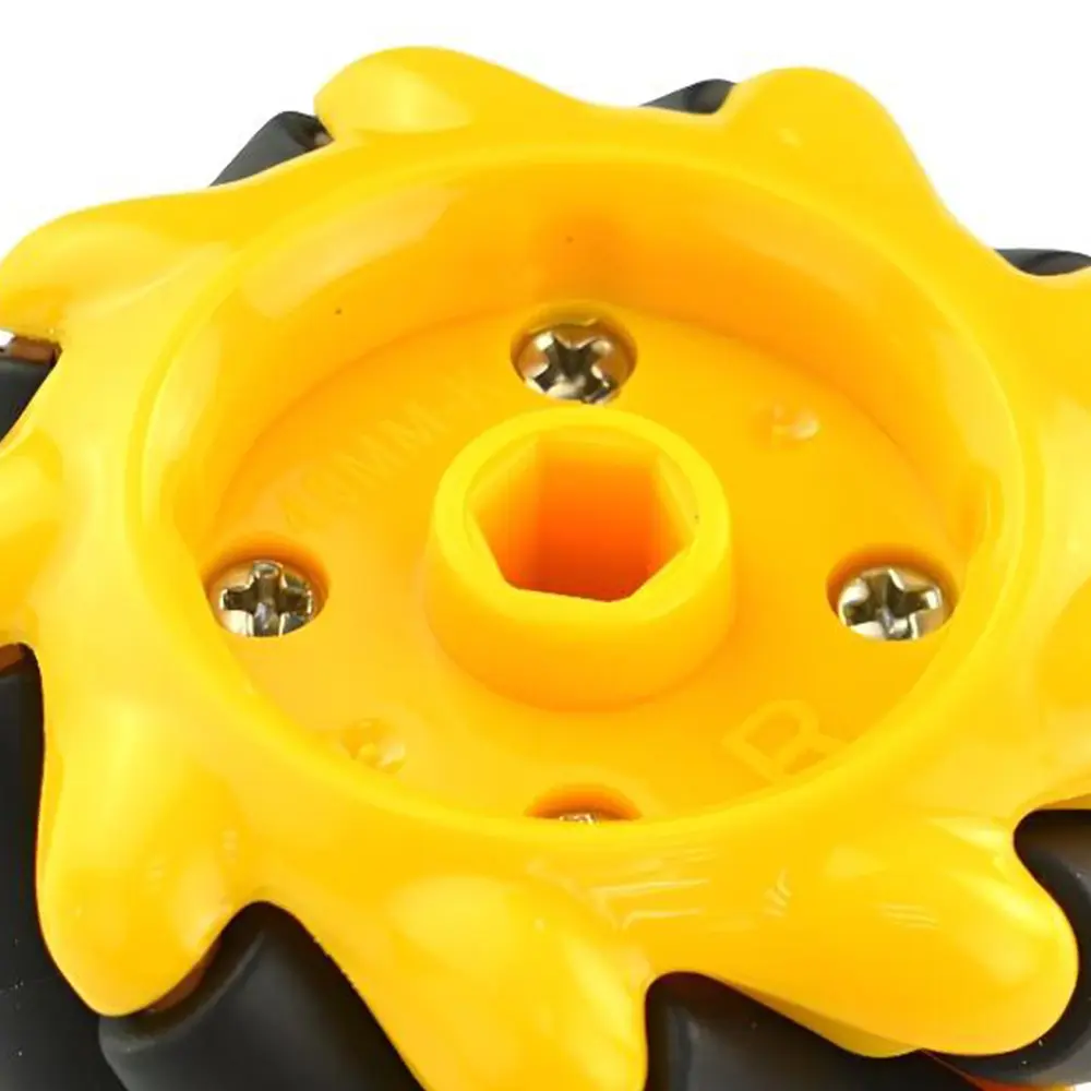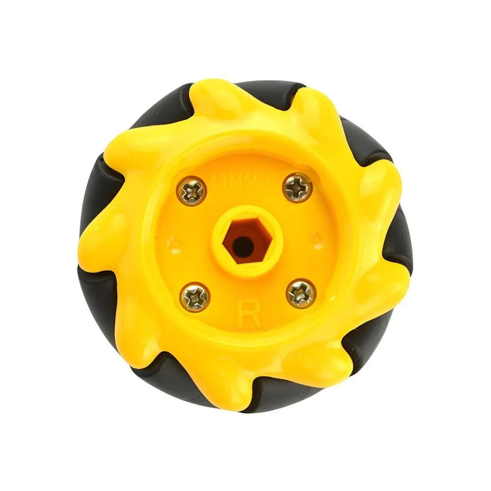 Ogni ruota misura 48 mm di diametro ed è composta da nove robusti rulli, che ne migliorano la trazione e la durata. I rulli sono realizzati in plastica resistente e rivestiti in gomma siliconica ad alto attrito, offrendo una presa solida e al contempo resistente all'usura e agli urti. Il kit di ruote Mecanum è progettato per offrire prestazioni superiori, consentendo agli utenti di padroneggiare con precisione le proprie creazioni robotiche.