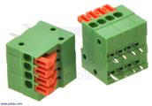 Queste morsettiere senza viti ad ingresso laterale hanno un passo di 0,1″ (2,54 mm). Ogni blocco ha quattro terminali a molla che afferrano automaticamente le estremità spelate dei fili da 26 – 18 AWG inseriti, consentendo connessioni facili e temporanee al PCB e le unità possono essere combinate per creare blocchi più lunghi. Sono classificati per 150 V, 2 A (UL) e vengono spediti in confezioni da due.