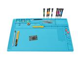 Questo tappetino multifunzionale di 550 x 350 mm è ideale per lavori di saldatura e riparazione. Il tappetino è realizzato in silicone, un materiale antistatico, che rende il tappetino ESD sicuro. Inoltre, il tappetino è resistente al calore fino a 500 °C, in modo che il PCB possa essere semplicemente saldato sul tappetino. Se il tappetino non viene utilizzato, può anche essere piegato o arrotolato, perché il materiale non si arriccia e mantiene sempre la sua forma originale.
