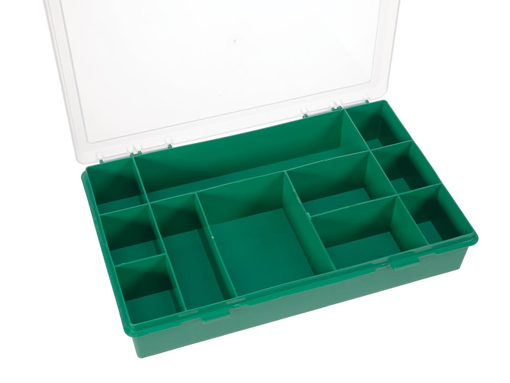 La custodia TAYG è un organizzatore compatto ma versatile, che misura 290 x 195 x 54 mm. Con 11 scomparti separati, offre ampio spazio per tenere in ordine una varietà di oggetti.