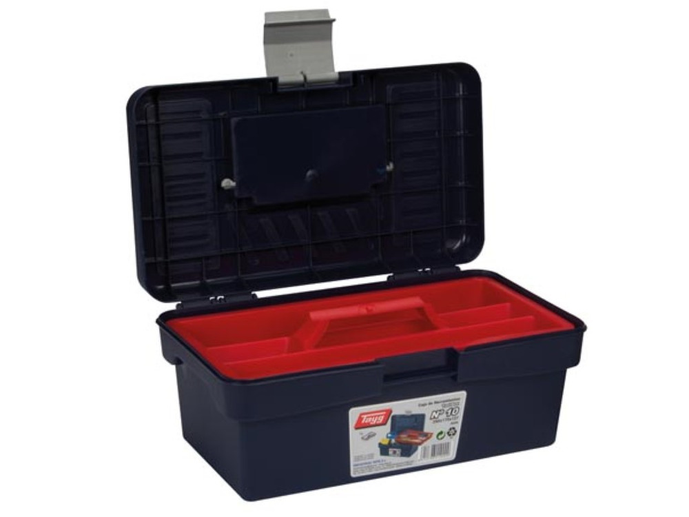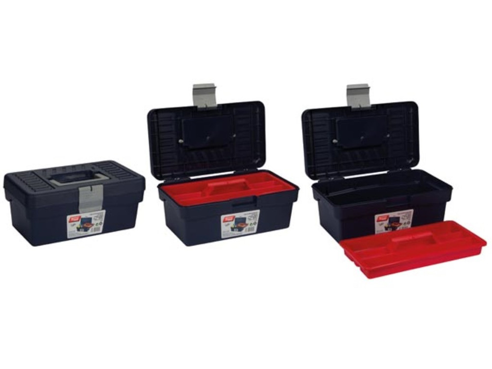 La TAYG Gereedschapskist con cassetto offre una soluzione di stoccaggio efficiente con le sue dimensioni compatte di 290x170x127 mm e una capacità di 6,2 litri. Questa versatile cassetta degli attrezzi è progettata per un'organizzazione ottimale e un facile accesso ai tuoi attrezzi.