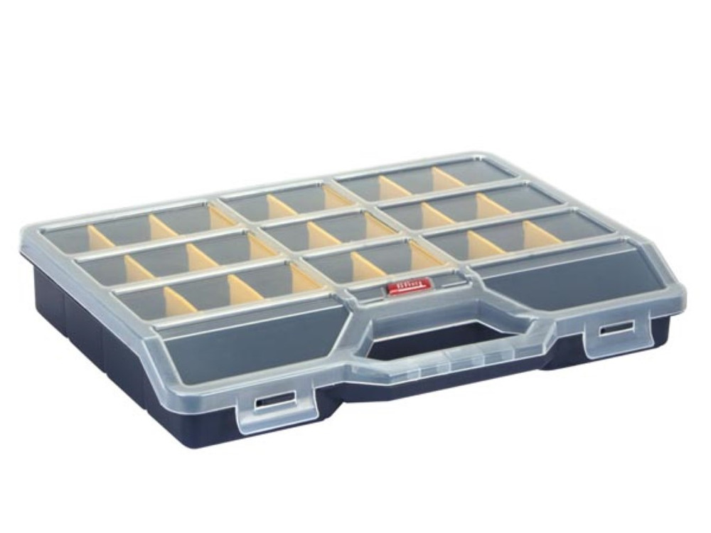 Dotato di 21 divisori rimovibili, questo versatile astuccio ti permette di personalizzare gli scomparti per contenere in sicurezza viti, chiodi, perline o qualsiasi altro piccolo componente. La capacità di 3,7 litri assicura abbondante spazio per le tue necessità senza occupare troppo spazio.