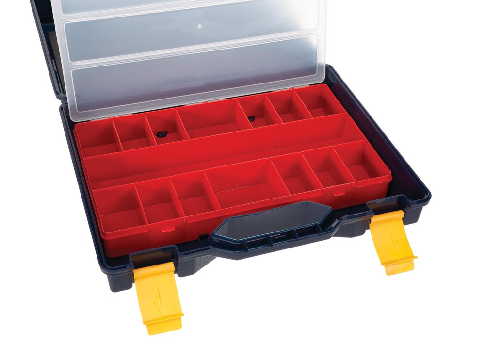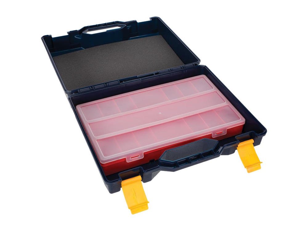 Con una capienza generosa di 16,5 litri, ospita una serie di utensili elettrici insieme agli accessori essenziali. La costruzione robusta assicura durata, proteggendo la tua attrezzatura da urti e fattori ambientali.