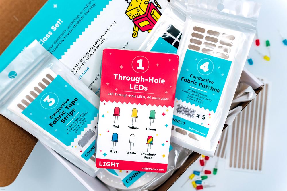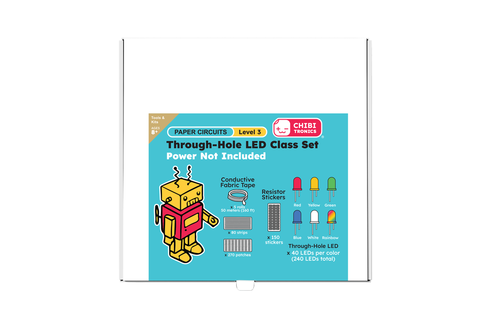 Con 160 piedi di nastro in tessuto conduttivo resistente e strisce e toppe pre-tagliate, gli studenti esploreranno percorsi elettrici con facilità, migliorando la loro comprensione dei principi dei circuiti. Questo set offre un'esperienza di apprendimento coinvolgente e tattile, perfetta per aule, laboratori STEM e ambienti di apprendimento collaborativo. Progettato per il progresso educativo, il Chibitronics Through-Hole LED Class Set trasforma i circuiti di carta in una classe di scoperte.