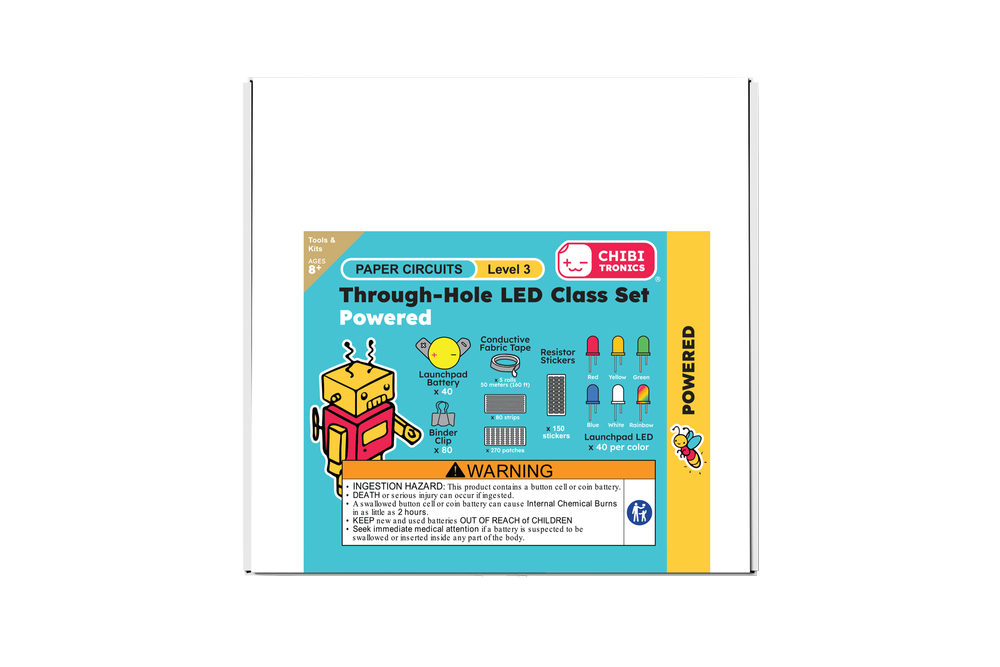 Il Chibitronics Through-Hole LED Class Set (Powered) offre un modo coinvolgente per esplorare concetti avanzati di circuiti con un'esperienza tattile. Pensato per contesti educativi, questo set permette agli studenti di dare vita ai circuiti attraverso la creazione di lavori di carta.