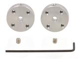 Questi mozzi di montaggio universali in alluminio consentono di montare ruote e meccanismi personalizzati su alberi motore di 3 mm di diametro. Il set include due mozzi, due viti di fermo M3 per fissare i mozzi agli alberi del motore e una chiave a brugola da 1,5 mm da utilizzare con le viti di fermo. Ogni mozzo ha quattro fori di montaggio filettati per viti M3 (non incluse).