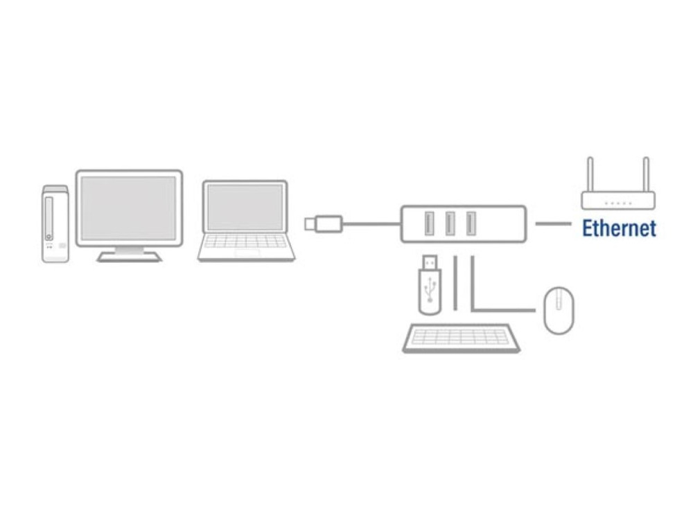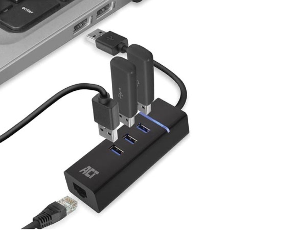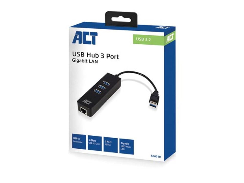 Hub USB 3.2 Gen1 con 3 porte e porta di rete Gigabit. Non hai abbastanza porte USB sul tuo laptop? La porta di rete del laptop è rotta o non disponibile? L'AC6310 3-Port USB 3.2 Gen1 Hub con porta di rete Gigabit è la soluzione giusta.